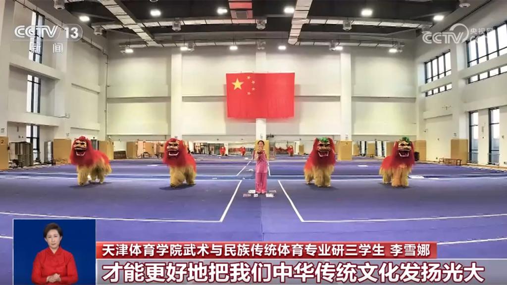 天津体育学院武术与民族传统体育专业研三学生 李雪娜:我们就是要守正创新,如何以一种新的方式呈现给观众。我们加入现代舞元素,让更多人首先先喜欢它,然后愿意去看它,愿意了解它。